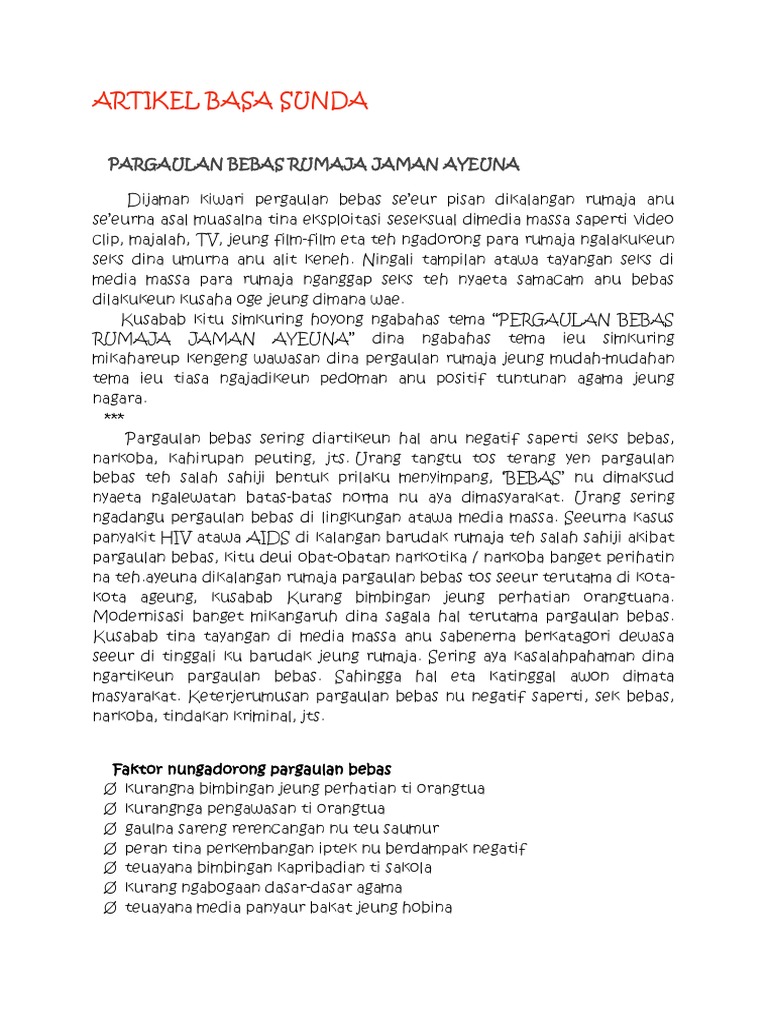 Terima kasih tentang artikel nya , semoga bermanfaat, kunjungi my blog kuliner indonesia. Ada beberapa media untuk publikasi artikel, bisa di majalah, koran. Artikel bahasa sunda tentang budaya sunda. Pendidikan merupakan suatu hal yang pada saat sangat dinilai sangat penting di dunia, sebab di dunia ini masih. Doc tugas artikel bahasa sunda syamil m rizky academia edu.